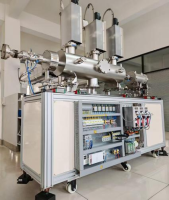 高真空多源蒸发镀膜系统为河北大学制作 设备概述: 电阻加热式蒸发镀膜设备,适用于实验室制备金属单质、氧化物、介电质、半导体 膜、有机膜,操作简便,占地面积小。 结构及技术指标: 真空室为拉门结构,配备样品台,分子泵+机械泵机组及蒸发源。 样品台具有旋转、升降、加热功能。 设备极限真空:6×10负五次方Pa; 漏率为关机12小时≤10Pa(新设备空载,极限真空后关机); 恢复工作真空时间:≤40min(新设备充氮气空载7×10-4 Pa);